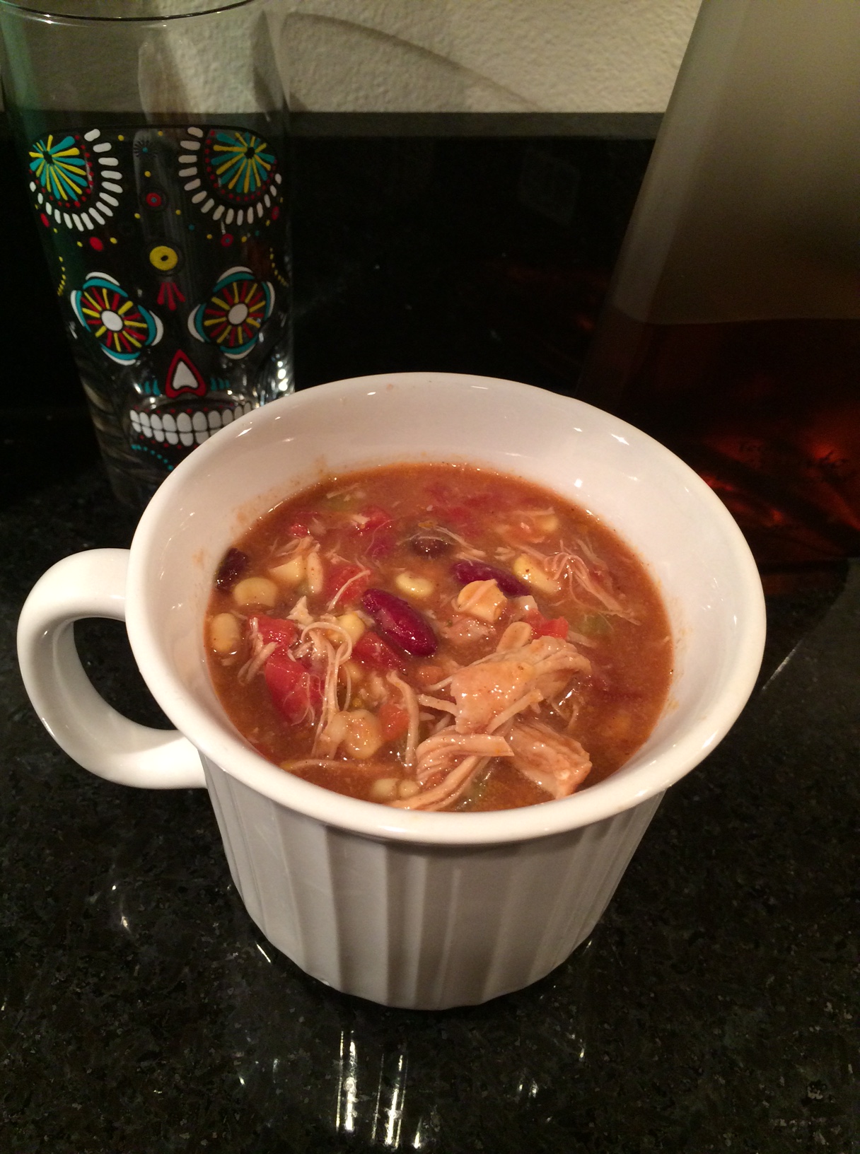 About an hour before serving, remove the chicken, shred it, then put back in pot. Give it a good stir, and consider which optional goodies you may want to add. If I’m in a hurry, I like to throw in taco seasoning and call it good. Give it another good stir or two then let the flavors do their thing for the next hour.