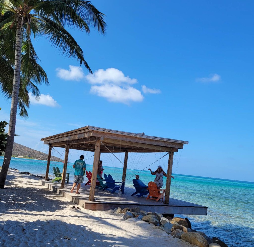 We had a great time exploring the grounds, enjoying a lovely meal, and some tasty refreshments at the upstairs bar. You just can’t go wrong with a bar that has swings for seats. At one point, there was a large group that practically took over the bar… some very fun and friendly people. They were employees on break from Necker Island, Sir Richard Branson’s private isle, according to the bartender. The left as quickly as they came, and we felt like had the place to ourselves. All in all, Saba Rock was an excellent way to wrap up this leg of our adventures.