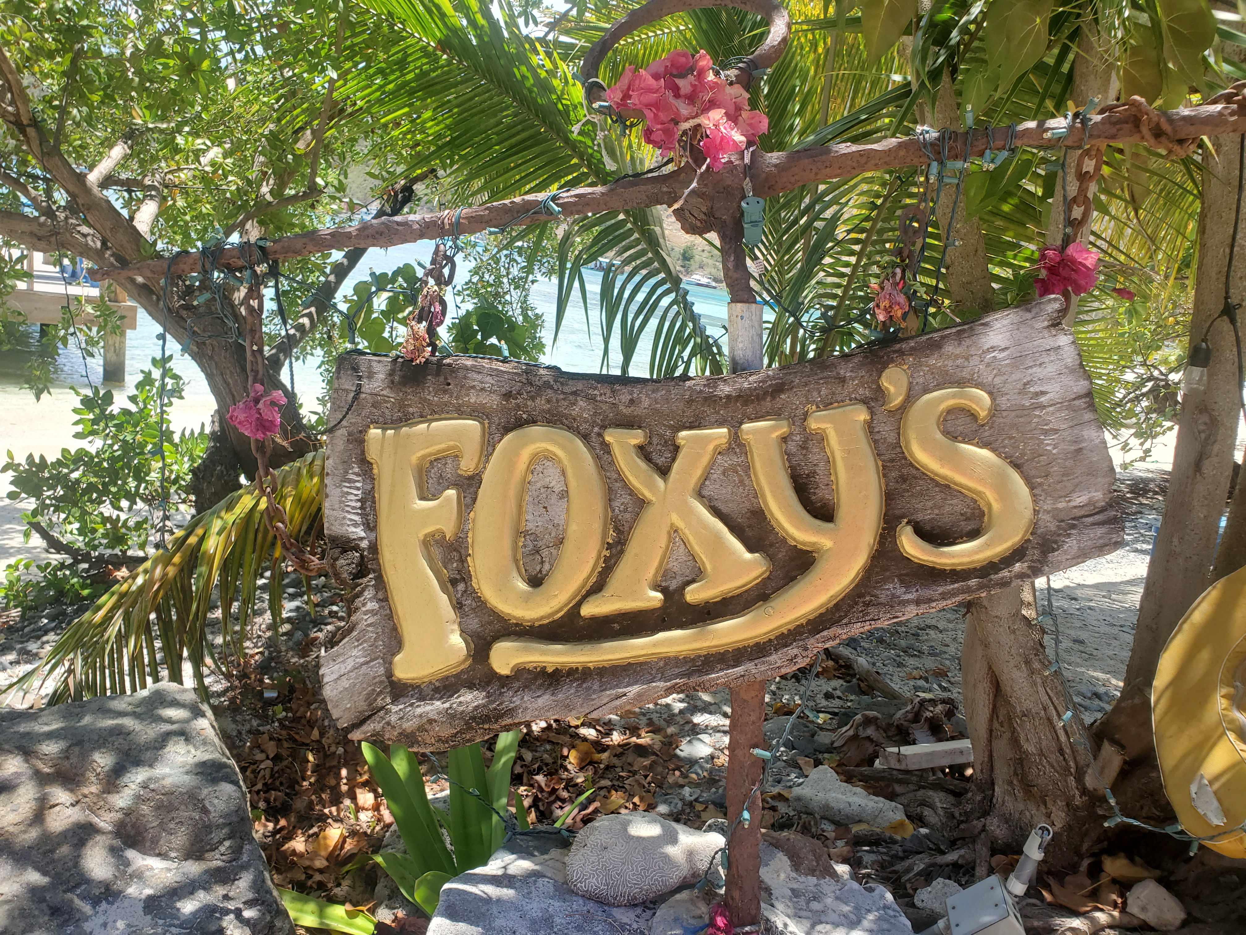 Our first stop in the BVIs was to Great Harbor on Jost Van Dyke. There we experienced the oddest check in process ever. An individual at one office insisted we bring the sailboat to the main dock, so we made our way in the shallow water, and arrived with completely frayed nerves. Once there, the Harbor Master scolded us for doing this, and when we shared why we did it, the cursing began. Turns out we somehow ended up in the middle of a little turf war. We did not need to bring our boat in, the Harbor Master (HM) knows how unsafe this is, and wants to protect the boats and the coral in the harbor. Apparently the person we spoke to on the phone (not in the HM’s office), wanted to demonstrate how much power they had in their office, and so on and so forth. We finished the required paperwork, secured a mooring ball, then headed to Foxy’s for a yummy lunch. Note to future self: just keep your boat on the mooring ball and take the dinghy in like you would on every other island. Safety first.