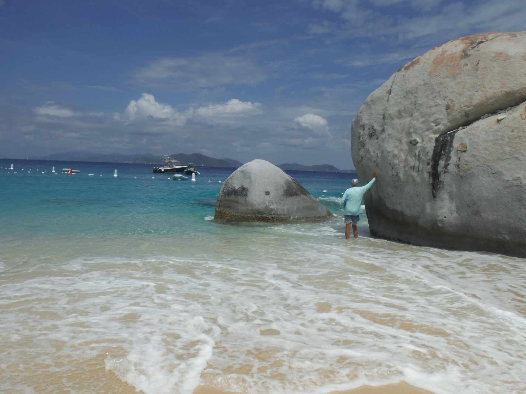 The biggest challenge of the day was to get back to the boat. No motor boats allowed in the swim area or near shore, so hubby had to swim to the boat, get the dinghy, come back to the swim area, and wait for us to swim out to him. The water was really only spicy near the beach, but those waves had some strong pull to them. Eventually, we all made it back to safety and were exhausted from a very full day.