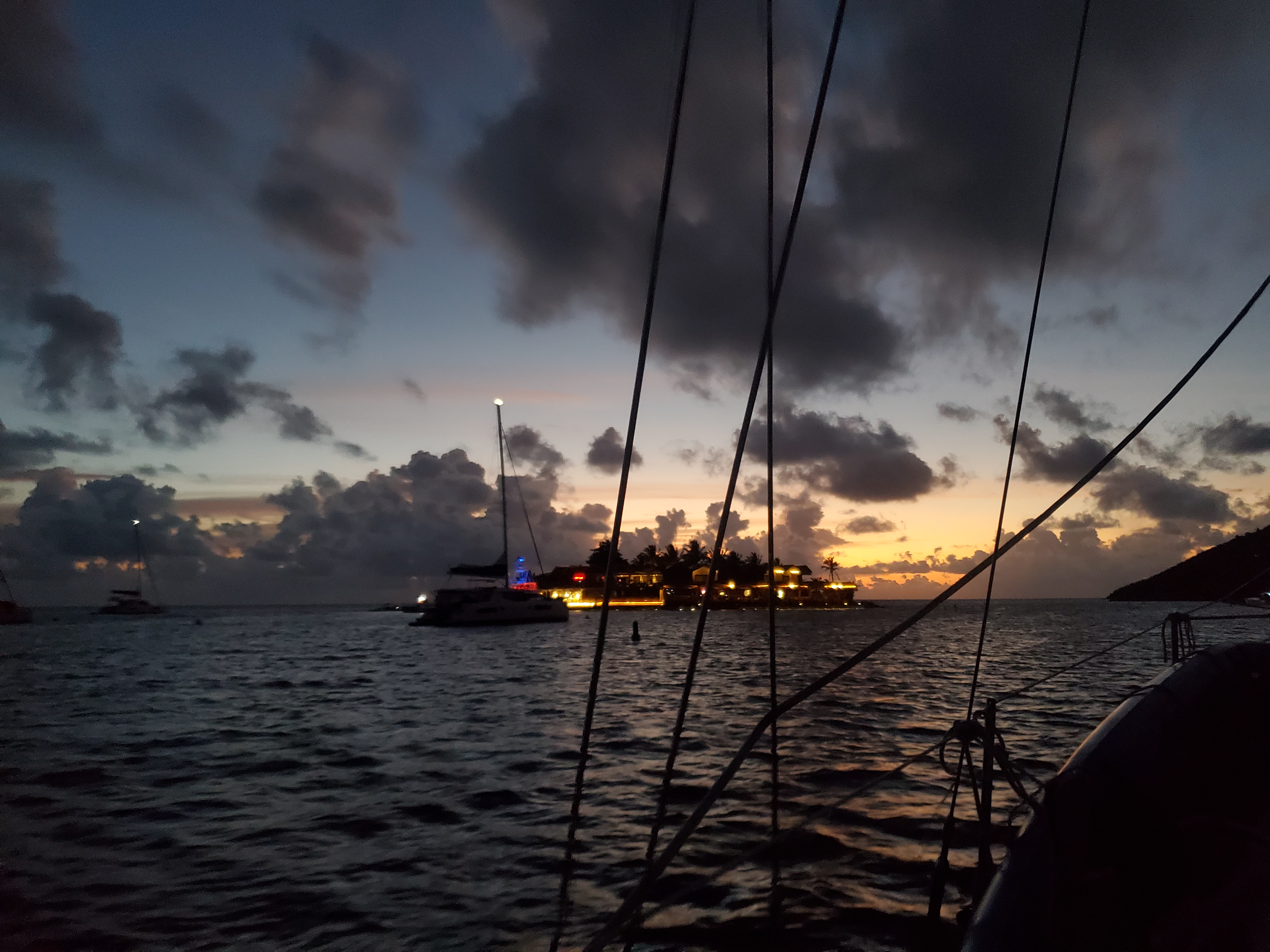 Our route from St. Croix to St. Martin took us back through the BVIs to Virgin Gorda, where we would make a crossing that started before the sun came up. After carefully navigating through the outer reef , we were able to motor sail towards Anguilla where we planned to rest for the night. Happily, our charts were accurate, and we never kissed any rocks or coral that morning. That is always a good start to any day on the water. Traveling in the dark is not our favorite thing to do, but it is nice to have the sunrise guide our way.
